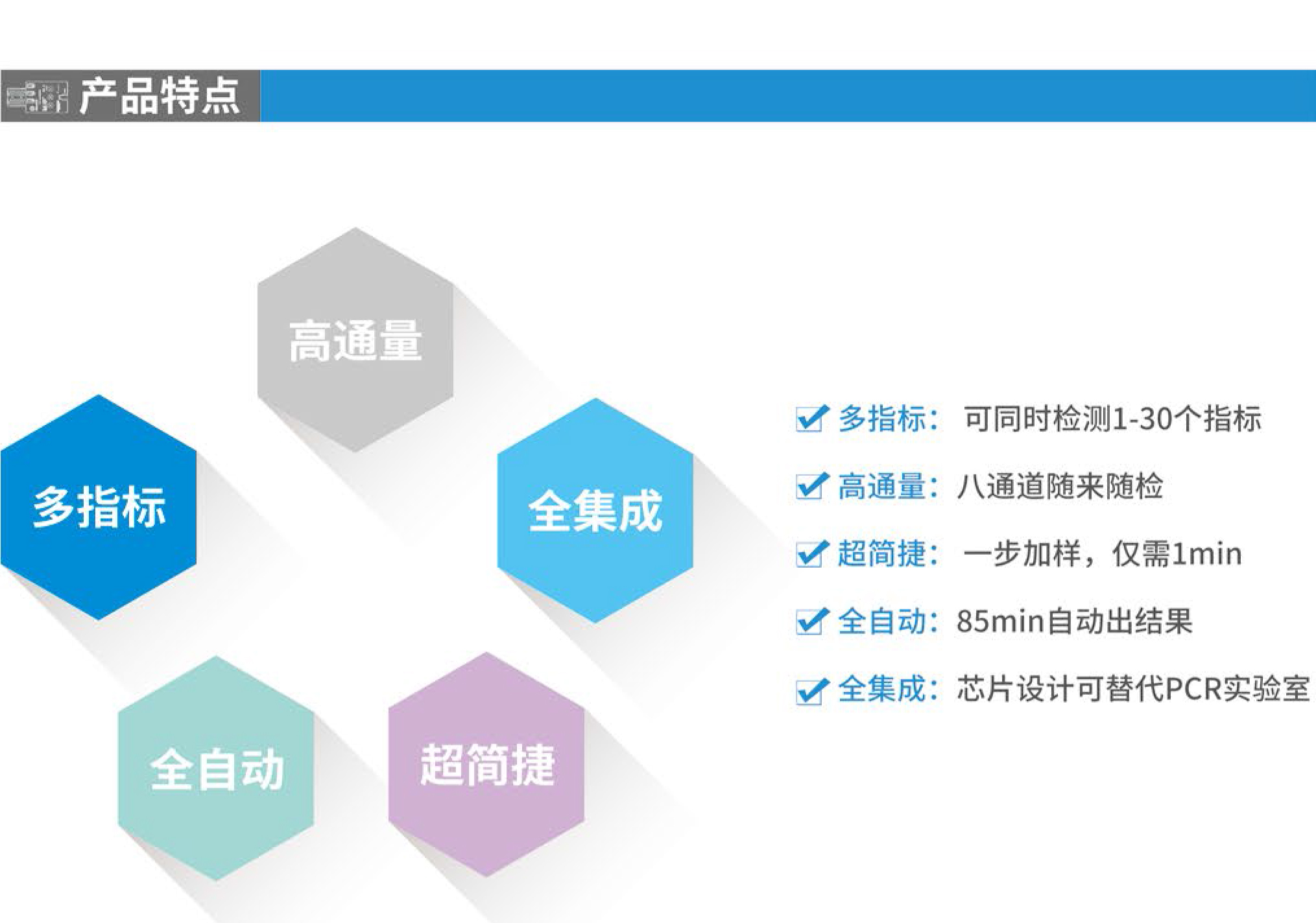 Onestart-1000全集成微流控芯片核酸檢測系統(tǒng)將復(fù)雜樣品破碎技術(shù)、磁珠核酸提取技術(shù)、微流控芯片PCR技術(shù)三大技術(shù)全集成在一起,可以一次對1-60種常見致病菌及其耐藥分型進(jìn)行快速檢測(1.5小時內(nèi)),解決了傳統(tǒng)病原體培養(yǎng)法手工操作繁瑣、周期長、檢出率低等問題,對傳染病檢測、食品安全監(jiān)控、反恐監(jiān)測有著重要意義。系統(tǒng)可鏈接物聯(lián)網(wǎng),自動上傳檢測數(shù)據(jù),實(shí)現(xiàn)樣本的在線監(jiān)測、分析、預(yù)警和溯源。